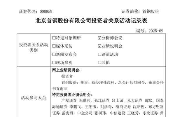 首钢股份:公司电炉产线预计2026年投产 年均可减碳约143万吨