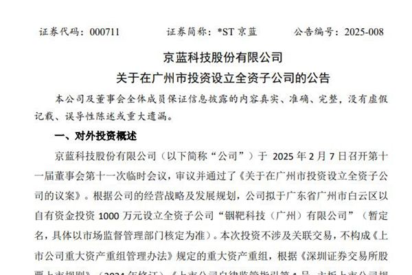 *ST京蓝在深圳、广州投资设立全资子公司,从事资源再生利用等业务