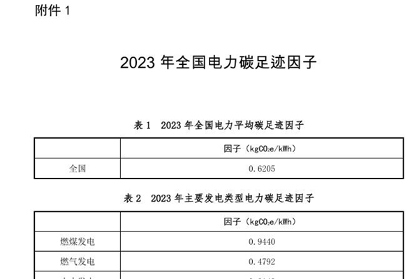 《2023年电力碳足迹因子数据》发布