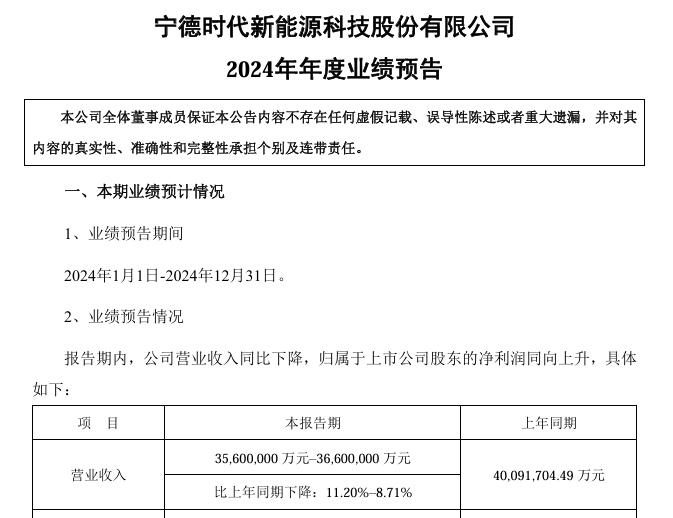 宁德时代:2024预计营收3560亿至3660亿,净利预计增长11%到20%