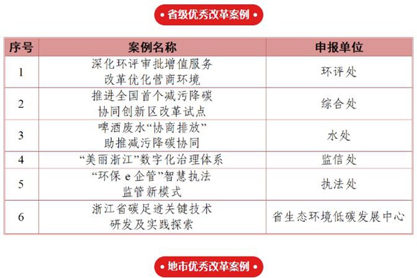 浙江省生态环境系统2024年度优秀改革案例公布