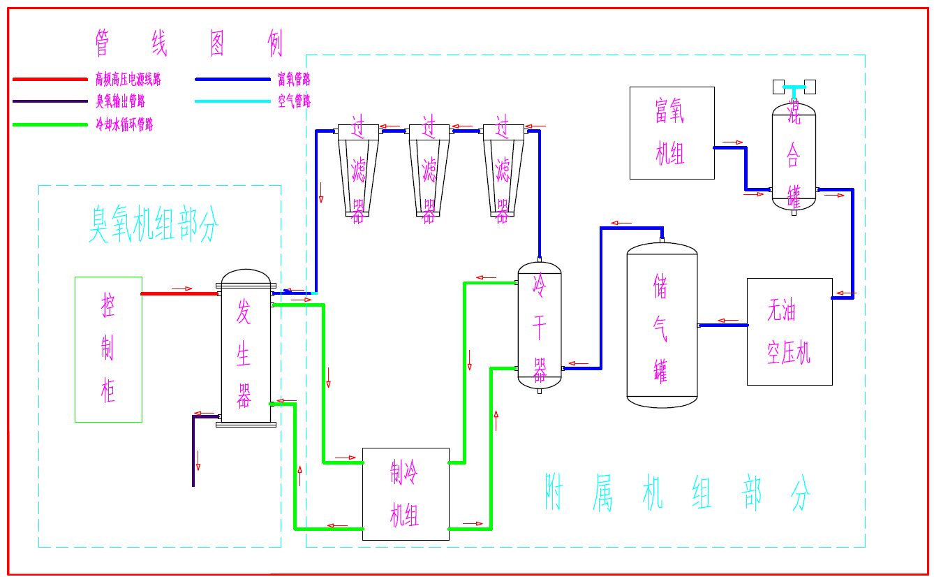 注:以上功率表为臭氧系统的额定运行功率,配电须留有充足的余量。